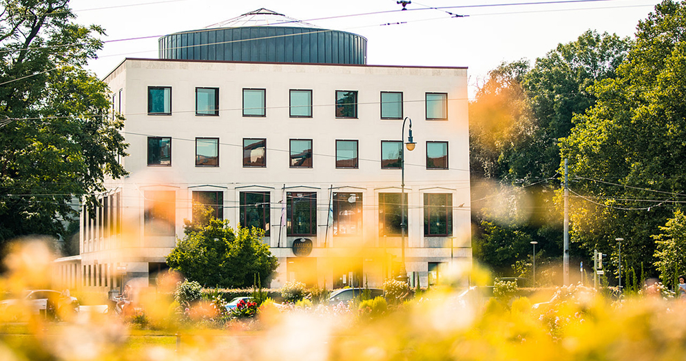 - Die acatech Geschäftsstelle befindet sich direkt gegenüber der Tram-Haltestelle. Überqueren Sie die Barer Straße. Der Eingang zur acatech Geschäftsstelle befindet sich im Hauptgebäude.